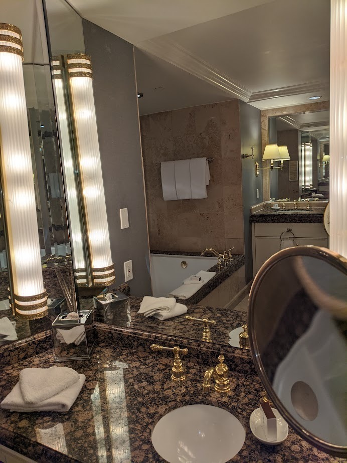 The Emperor Suite we resided in was reminiscent of the same grandeur but in a more private and intimate setting. While certain elements of the room design may come across as a tad dated, they seamlessly blend with the hotel’s overarching theme of timeless elegance. One standout feature of our stay was the room service on the last night. A simple pleasure perhaps, but the convenience and quality of the meals served were commendable. When dining in the comfort of one’s room, there’s an expectation of a slight dip in food quality, given the logistics of such service. However, Caesars defied this expectation, delivering food that was not only timely but also delightful in taste and presentation.