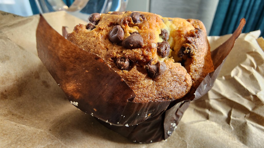 Breakfast: Decadent chocolate chip muffins from the Marketplace Express Cafe.