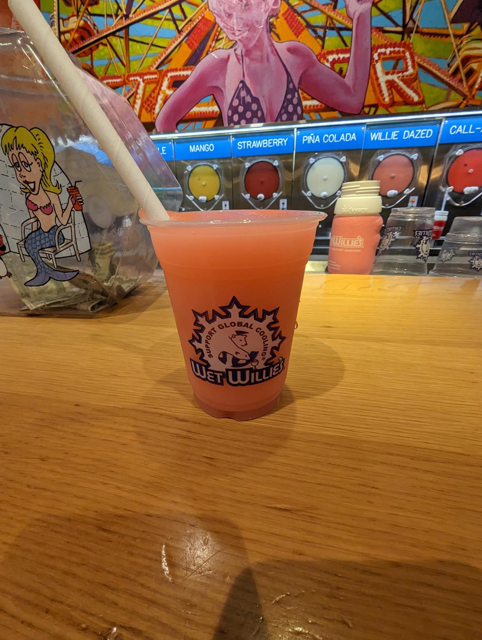 Evening Treat: A refreshing ‘Sex On The Beach’ slushie from Wet Willie’s for my wife.