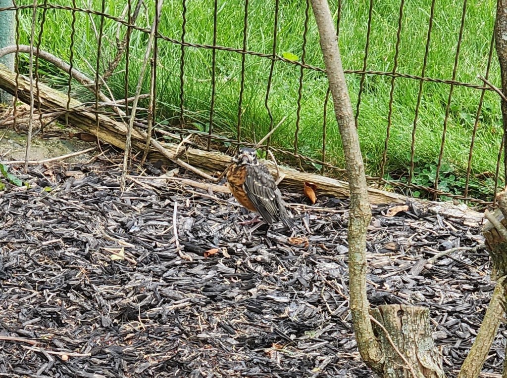 I have a lilac bush in my yard that has been having a rough couple years. The tallest branches were as high as my garage and have had some type of fungus on them causing rot. I decided to cut them back this year, to allow the smaller branches that are still thriving, to take over and hopefully regrow to it’s full glory. I left the branches in my yard to offer to my neighbor for his outdoor fire pit the next time I see him. The few days following the trim, I was outside doing other yard work and noticed a Robin Fledgling sitting on the cut branches, staring at me as I worked and then moving over beneath what is left of the lilac. I asked ChatGPT to