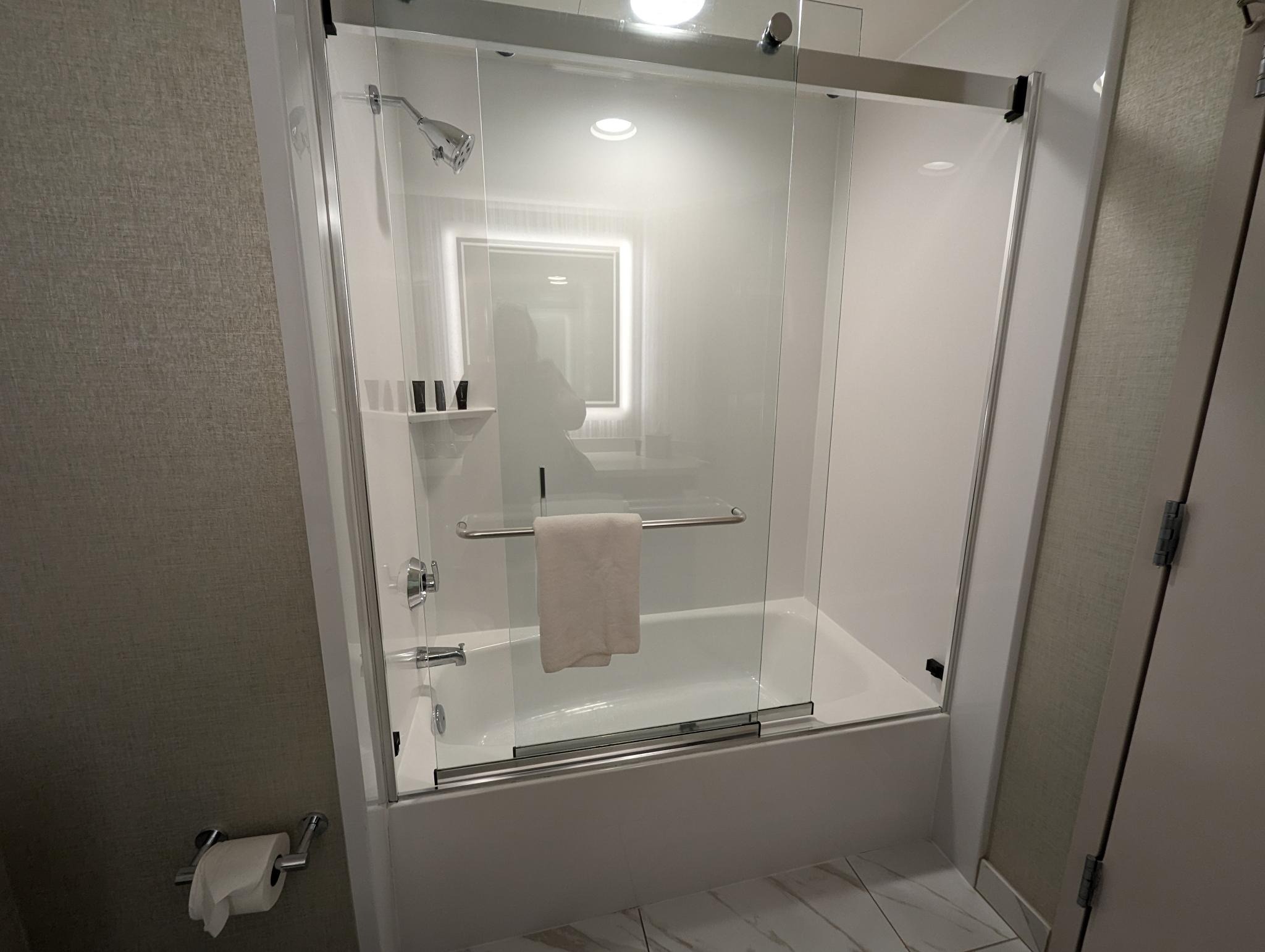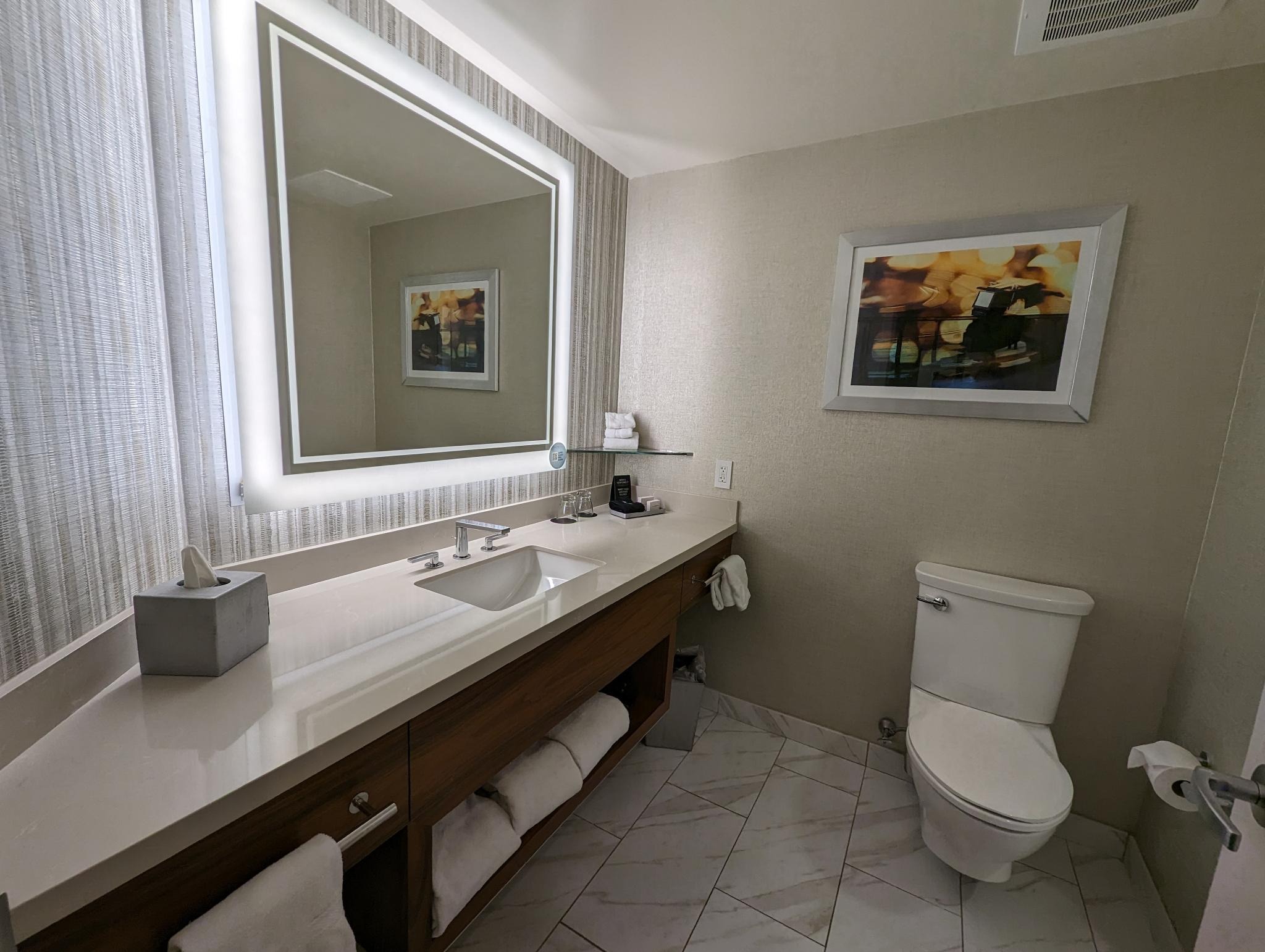 The bathroom was a seamless blend of functionality and luxury. While Tropicana’s bathroom boasted a walk-in shower, the Hard Rock opted for a tub-shower combo. Admittedly, this made it slightly less convenient to navigate, but it was offset by the Rock Spa bathroom products that adorned the space. Each time we reached for the hand-cut soap or wrapped ourselves in the plush cotton towels, there was a hint of indulgence, a little nod to pampering oneself while on vacation.