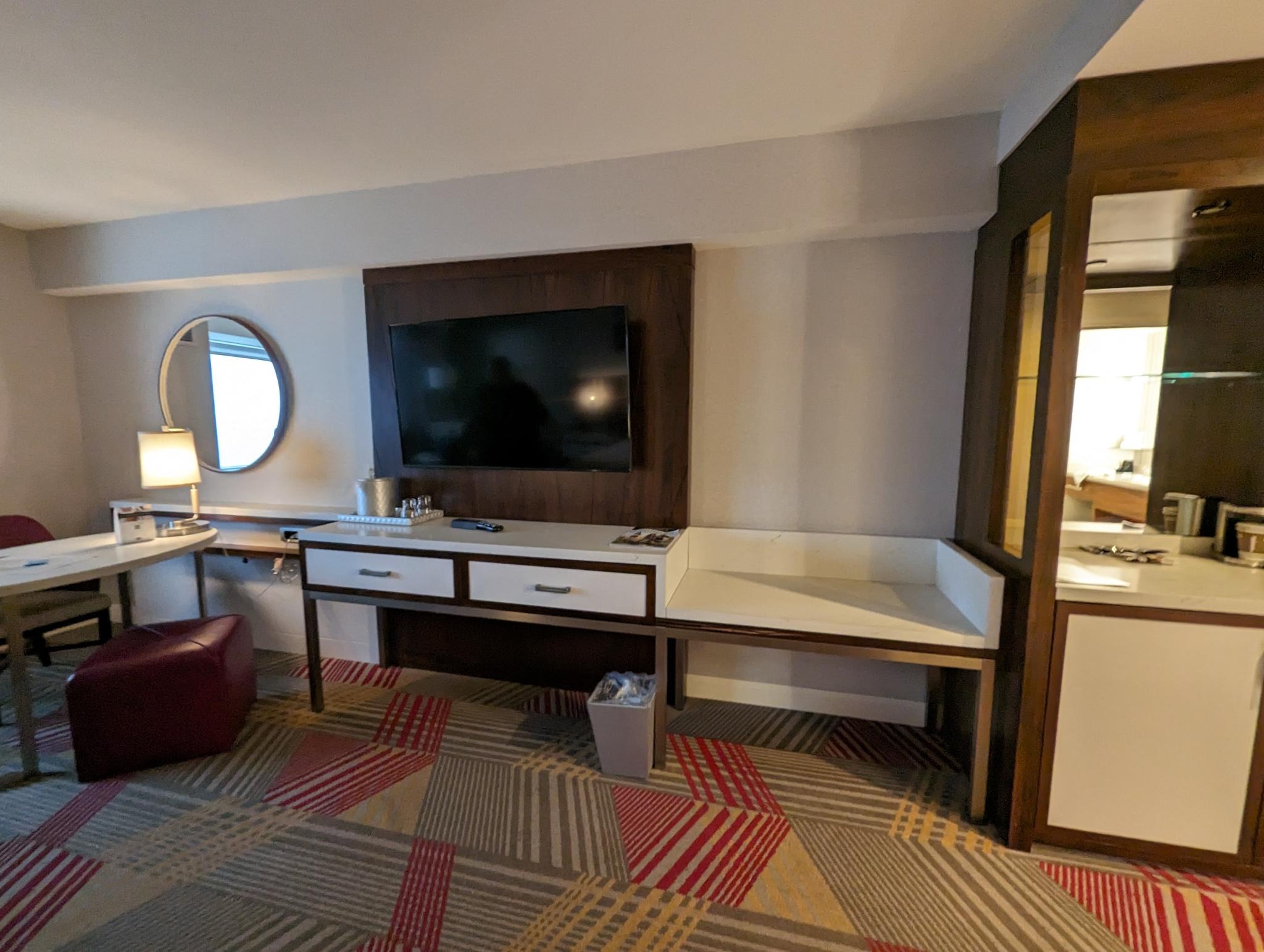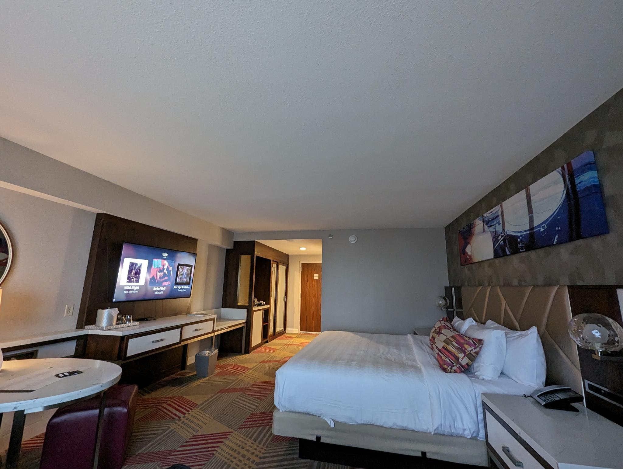 As we transitioned from the bustling corridors of Hard Rock into our South Tower Classic King room, influenced by our past CoalCracker travels, the ambiance unmistakably shifted. Memories of Tropicana’s vastness drifted to the back of our minds, replaced by the room’s inviting warmth. It’s not just the literal space that a hotel room encompasses, but the emotional space it creates for its occupants. While the Tropicana suite undoubtedly provided a grandeur of its own, the Hard Rock room had a distinctive charm, wrapping us in a comfort akin to a melodic ballad after a heart-thumping rock concert.