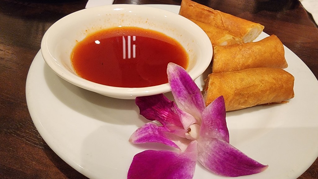 To start, we settled on a duo of appetizers. The Shanghai soup dumplings arrived steaming hot, their delicate wrappers holding a mouthwatering broth and tender meat filling. The exquisite skill involved in their preparation did not go unnoticed. Alongside those, the crispy shrimp spring roll made its entrance – a masterful combination of crispy, golden exterior giving way to succulent shrimp, perfectly seasoned and nestled among crunchy, fresh vegetables.