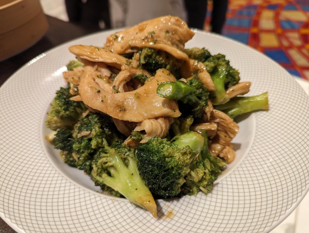 My wife’s main course, the chicken and broccoli, proved to be a standout. The broccoli was vibrant and cooked to retain just the right amount of crunch, and the chicken was tender, both enrobed in a savory, umami-rich sauce that amplified the natural flavors without overpowering them.